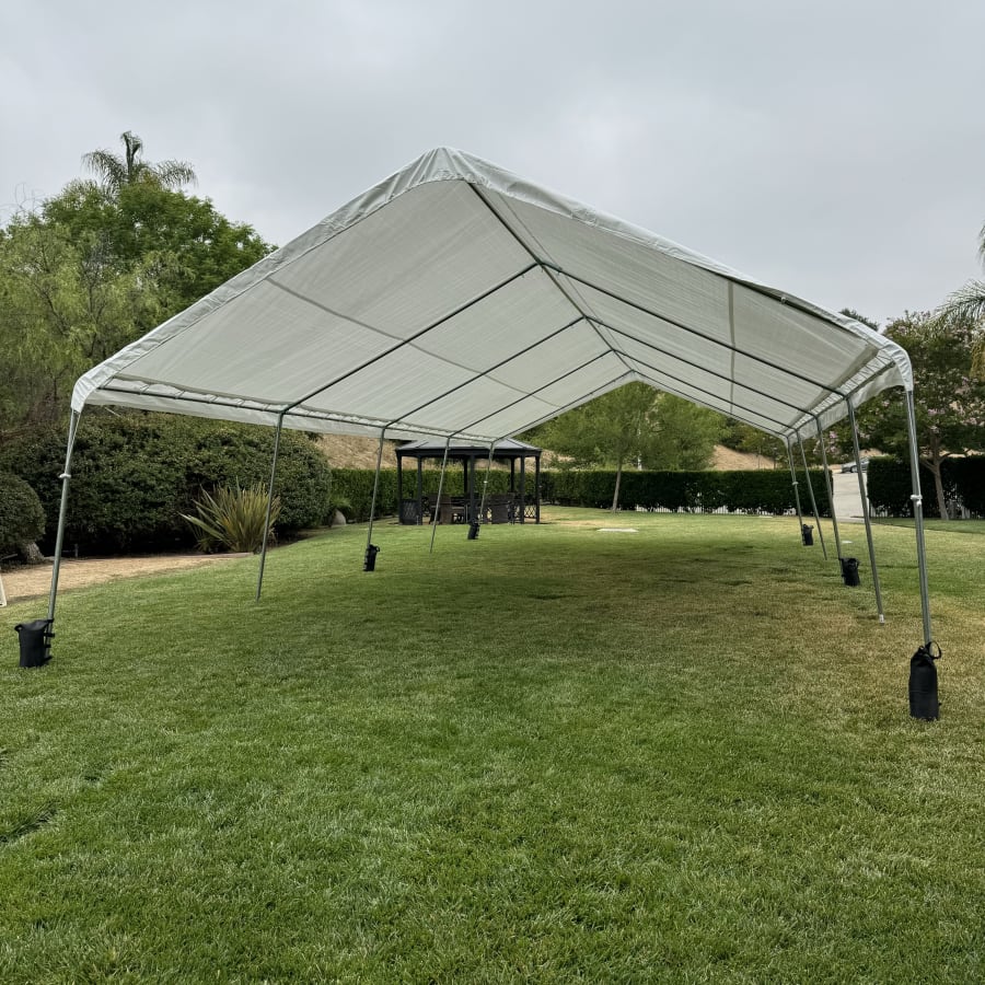 Make a bold statement at your next outdoor event with our 20x40 Canopy Tent. Offering 800 square feet of covered space, this large and elegant tent is ideal for weddings, receptions, corporate functions, festivals, reunions, and more. With its clean white canopy and durable frame, it provides both shelter and a polished look for any occasion.